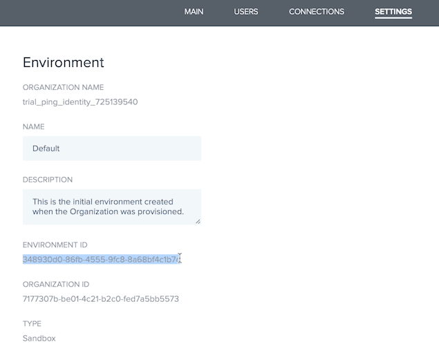 (Remember to expand the view on the right in the “Connections” tab for each app and click on the various application tabs to see more details. The environment id can be found in the “Settings” tab of the specific environment, as shown in the next section’s steps 1 and 2.)