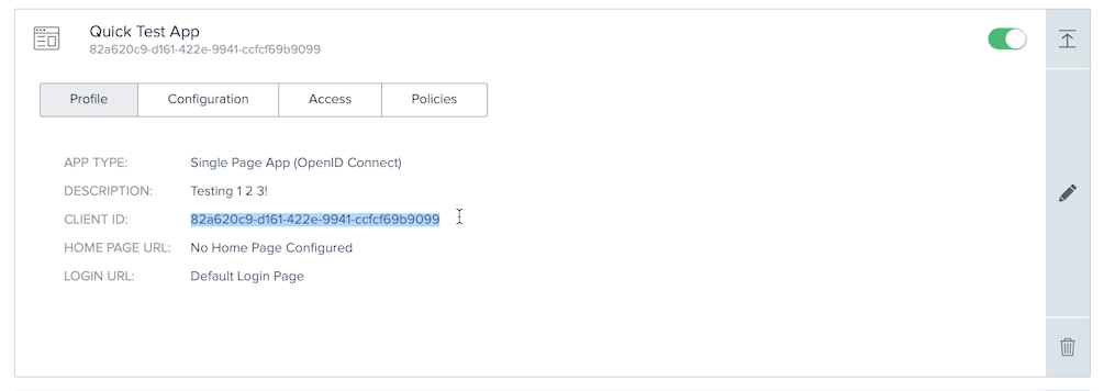 The PingOne for Customers application you create will be what your app will communicate with for its identity services. In other words, when someone tries to perform a task like logging in or registering for an account from your app, your app will make some API calls to the application set up in PingOne for Customers.