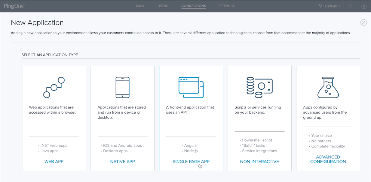 For this guide, let’s assume you have a Single Page Application. The directions are similar for other types of applications but might require a few different steps along the way. Follow these steps to create an application instance: