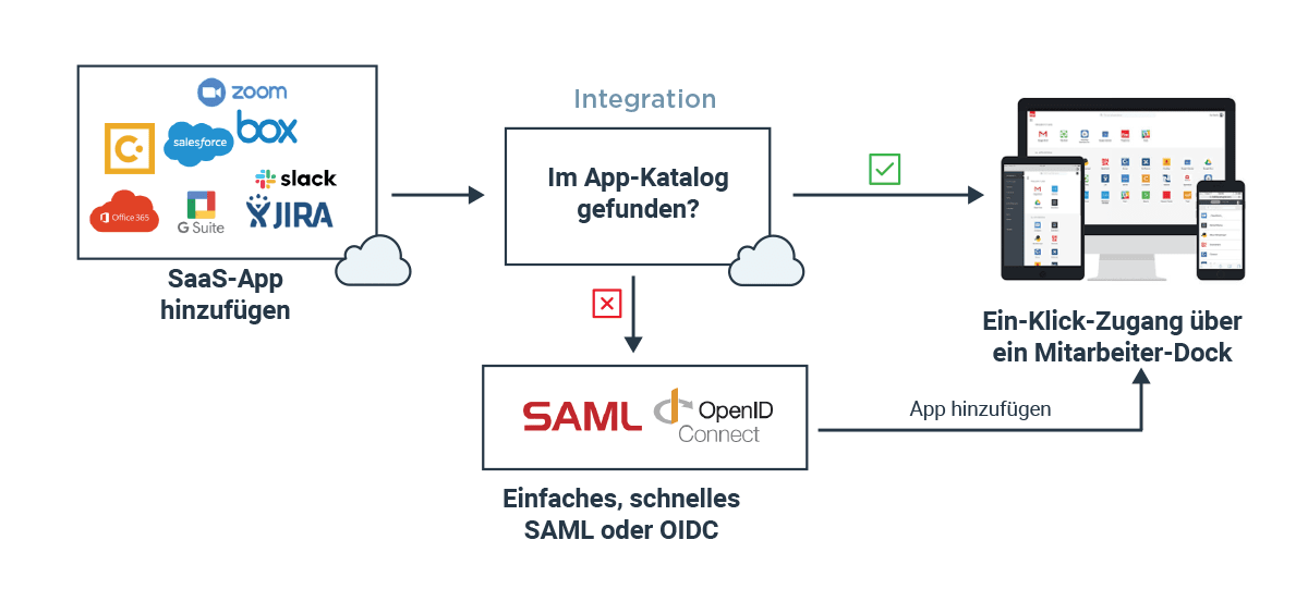 Am wichtigsten wäre vielleicht, dass Sie Ihren Mitarbeitern mit einer Authentifizierungsinstanz eine einfache und einheitliche Single Sign-On (SSO)-Erfahrung bieten können. Indem Ressourcen über einen einzigen Zugriffspunkt zugänglich gemacht werden, minimiert das SSO die Passwortweitergabe und die damit verbundenen Anfragen bei Ihrem Helpdesk. Wenn Sie dann SSO auch noch mit fortschrittlichen Sicherheitsfunktionen kombinieren, wie beispielsweise mit Multifaktor-Authentifizierung (MFA) und Varianten der passwortlosen Anmeldung, können Sie Ihren Mitarbeitern einen abgesicherten und optimalen Zugang auf die Ressourcen bieten, die sie brauchen, um noch produktiver zu arbeiten.