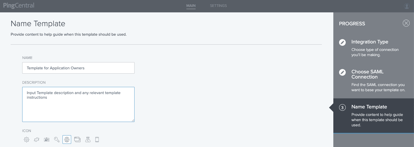 5. Input the Template Name and Description, and select an icon that makes it visually easy for application owners to choose from among the templates available to them.
