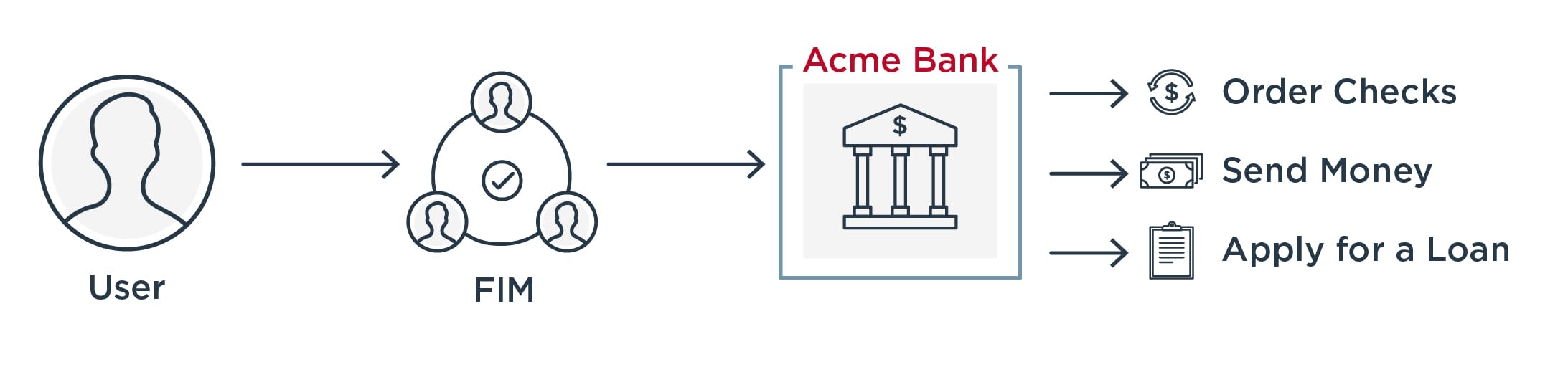 For example, FIM is necessary for an organization to give employees one-click access to third-party applications like Salesforce, Workday or Zoom. Using our banking example from before, FIM allows bank customers to seamlessly access bank services that are externally managed, like ordering checks, sending money via Zelle, and applying for a loan.