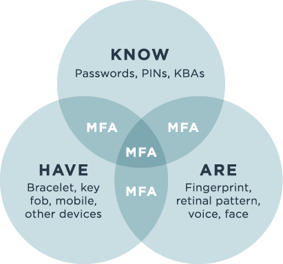 Using two authentication methods from the same factor, such as a password and answer to a security question from the Knowledge category, is less secure than multi-factor authentication and two-factor authentication. Bad actors who obtain compromised passwords and answers to security questions rarely have access to Possession or Biometric factors too. In fact, according to Microsoft, MFA can prevent 99.9 percent of attacks on your accounts.